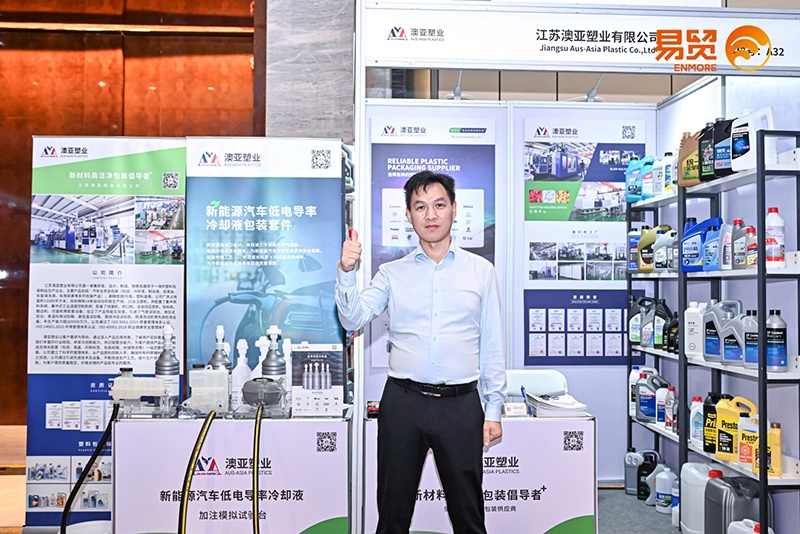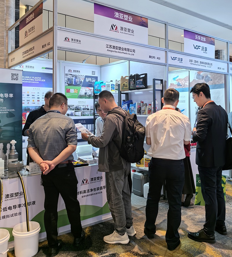 展會期間,澳亞展臺吸引了眾多業(yè)內(nèi)人士的關(guān)注,更有不少嘉賓對澳亞塑業(yè)展示的新能源汽車低電導(dǎo)率冷卻液包裝套件表現(xiàn)出了濃厚興趣;該產(chǎn)品是專為新能源汽車?yán)鋮s液包裝與加注而設(shè)計(jì)開發(fā),為新能源汽車?yán)鋮s液保持低電導(dǎo)率和安全加注提供了創(chuàng)新的解決方案。